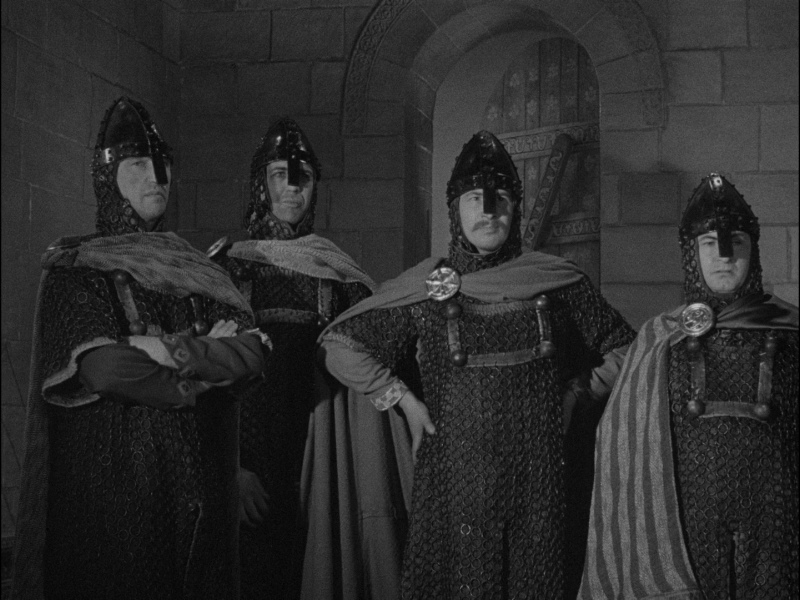 Hoellering went to extreme lengths to create authentic-looking costumes. The cloth was hand-woven and sewn using materials and methods of the twelfth century. Eliot, who first doubted the necessity of this, noted how the fabrics folded and draped quite differently from modern clothing. Hoellering was just as particular about the background for filming. The stark stone architecture of a Norman cathedral in the film is not in fact Canterbury Cathedral. Hoellering decided the cathedral had changed too much over the centuries and chose instead an abandoned church in St. John’s Wood, London.