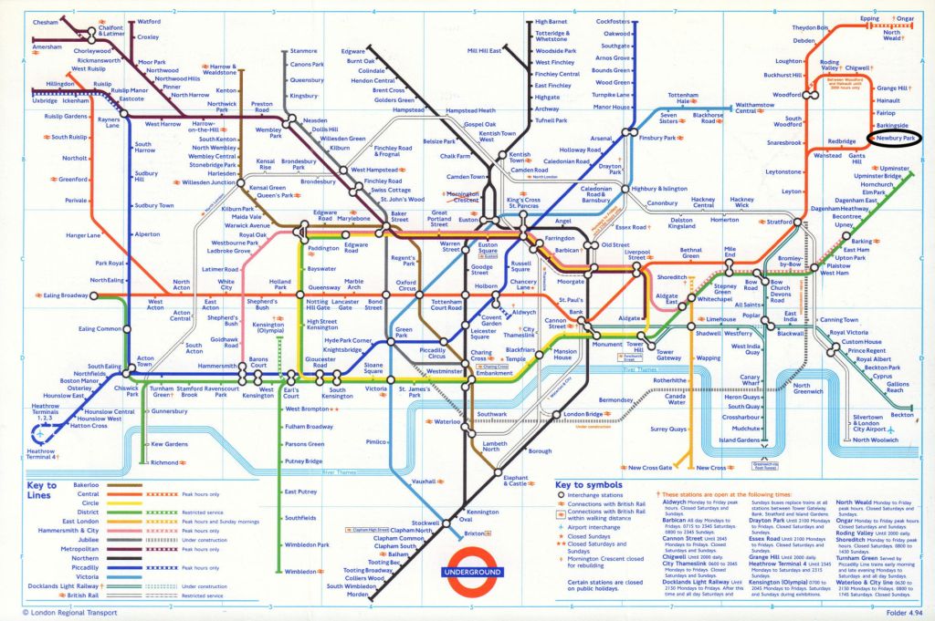 The iconic London Underground map from 1994, the year Lines on the Underground was published.